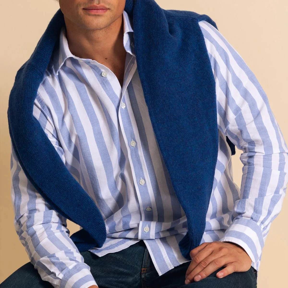 Loro Piana Boucle Jacket made in Italy. Cashmere polo, Italian Corduroy Trousers, Wool cashmere scarf made in UK.